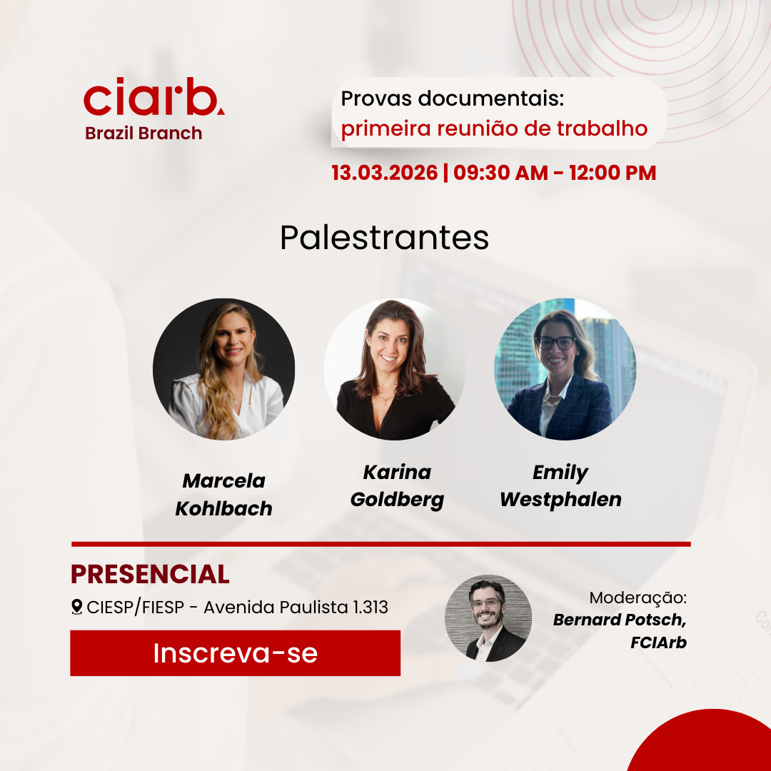 🇧🇷 [PT/BR] O Chartered Institute of Arbitrators (Ciarb) Brazil Branch convida para a primeira reunião de trabalho de 2026, dedicada ao tema provas documentais, dando
