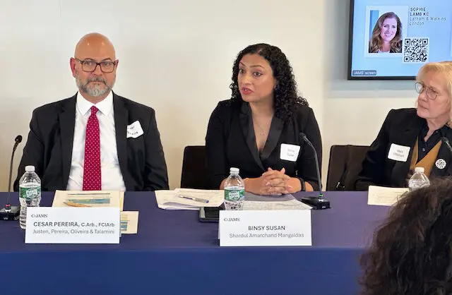 Speakers were: Alberto Fortun FCIArb, Sophie Lamb KC, Cesar Pereira C.Arb FCIArb – Ciarb Deputy President, Binsy Susan and Meg Utterback.